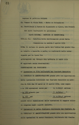 Comunicazioni del presidente: operazioni di fido e di mutuo fondiario deliberate dal Comitato esecutivo