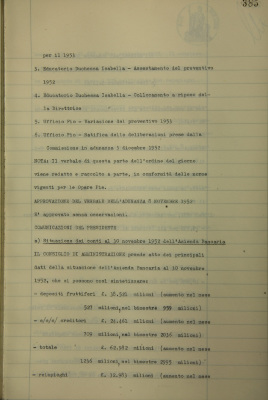 Comunicazioni del presidente: situazione dei conti al 30 novembre 1952 dell'Azienda bancaria; operazioni di fido e di mutuo fondiario deliberate dal Comitato esecutivo