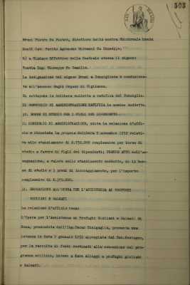 Erogazione all'opera per l'assistenza ai profughi Giuliani e Dalmati