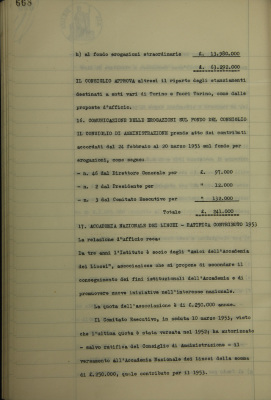 Riparto del fondo per opere per assistenza e pubblico interesse sugli utili 1952 dell'Azienda bancaria
