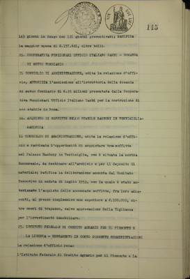 Istituto federale di credito agrario per il Piemonte e la Liguria. Versamento in conto corrente somministrazioni