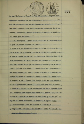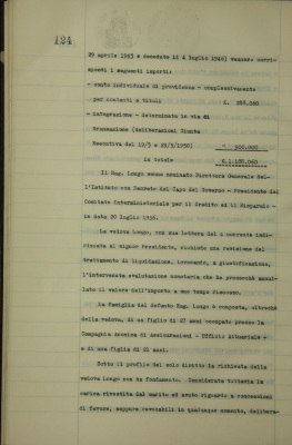 Vedova dell'ex direttore generale Longo Alfredo. Richiesta di revisione della liquidazione finale