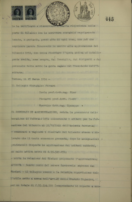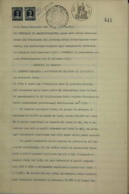 Gestioni di credito Azienda bancaria, approvazione bilancio al 31 dicembre 1953