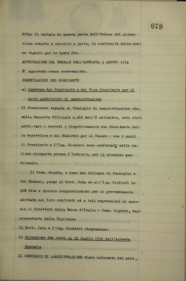 Parte seconda - Gestioni di beneficenza Ufficio pio, ratifica delle deliberazioni prese dalla Commissione in adunanza 4 agosto 1954 (verbale a parte)