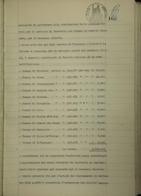 Servizi di tesoreria comunale, cauzione per il decennio 1954-63