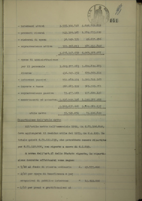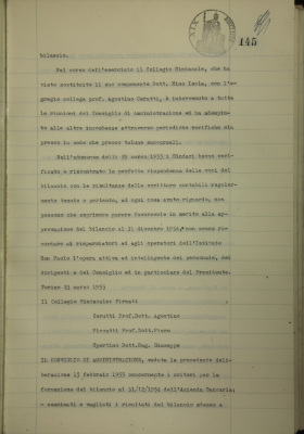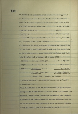 Parte prima - Gestioni di credito Azienda bancaria, approvazione bilancio al 31/12/1954