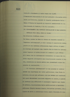 Riordinamento del servizio informazioni e dell'archivio generale fidi della sede di Torino