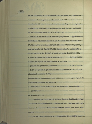 Sezione Credito fondiario, approvazione bilancio al 31/12/1955