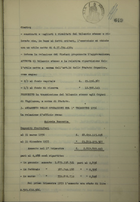 Andamento delle operazioni nel 1° trimestre 1956