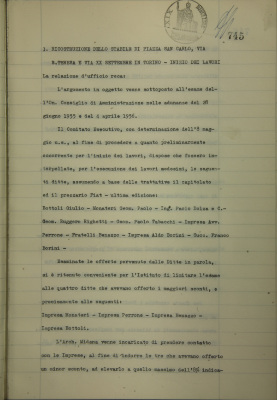 Ricostruzione dello stabile di piazza San Carlo, via Santa Teresa e via XX Settembre in Torino. Inizio lavori