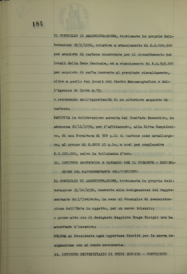 Riscaldamento 1956-1957 locali sede centrale, acquisto supplementare di carbone