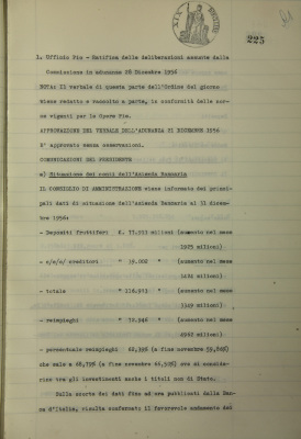 Comunicazioni del presidente: situazione dei conti dell'Azienda bancaria; operazioni di fido e mutuo fondiario deliberate dal Comitato esecutivo