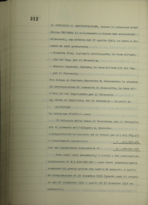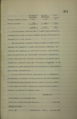 Cassa di previdenza per il personale, bilancio al 31 dicembre 1956