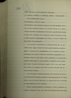 Agenzia Ospedale San Giovanni, Torino. Stanziamento per sistemazione locali
