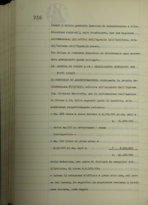 Agenzia di Torino n. 16, Torino. Stanziamento suppletivo per nuovi locali