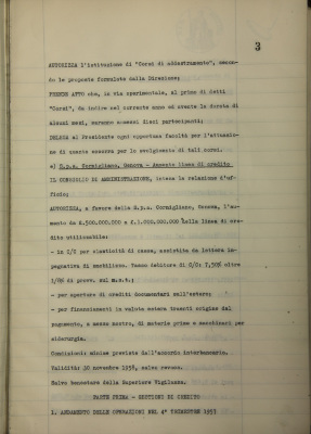 Comunicazioni del Presidente: situazione dei conti dell'Azienda bancaria; operazioni di fido e di mutuo fondiario deliberate dal Comitato esecutivo; corsi di addestramento del personale
