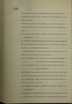 Provincia di Galliate, domanda di mutuo con garanzia di delegazioni