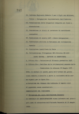 Comunicazioni del Presidente: situazione dei conti dell'Azienda bancaria; operazioni di fido e di mutuo fondiario deliberate dal Comitato esecutivo; Cassa di previdenza per il personale, svolgimento della pratica di esonero
