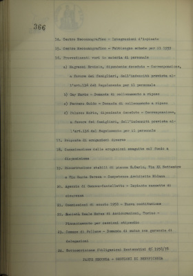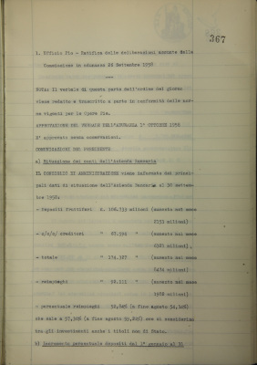 Parte seconda - Gestioni di beneficenza Ufficio pio, ratifica delle deliberazioni prese dalla Commissione in adunanza 26 settembre 1958 (verbale a parte)