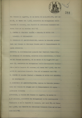 Comune di San Damiano d'Asti, domanda di mutuo con garanzia di delegazioni