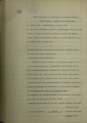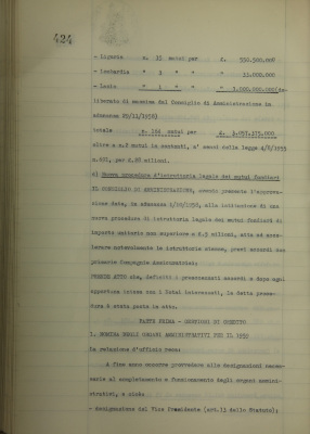 Comunicazioni del Presidente: situazione dei conti dell'Azienda bancaria; operazioni di fido e di mutuo fondiario deliberate dal Comitato esecutivo; nuova procedura d'istruttoria legale dei mutui fondiari