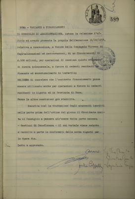Compagnia Tirrenia di capitalizzazioni ed assicurazioni, Roma. Variante a finanziamento