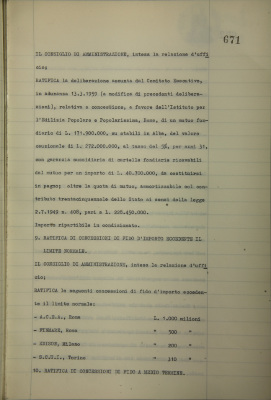 Ratifica di concessioni di fido a medio termine