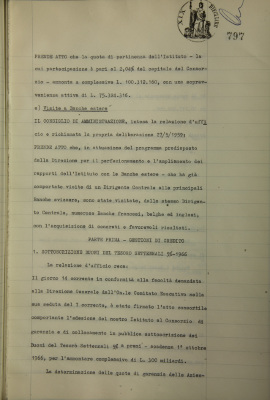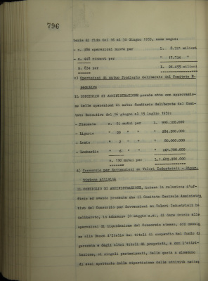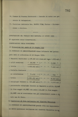 Comunicazioni della Presidenza: situazione dei conti al 30 giugno 1959; operazioni di fido e di mutuo fondiario deliberate dal Comitato esecutivo; Consorzio per sovvenzioni su valori industriali, ripartizione attività; visite a banche estere