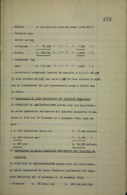 Comunicazioni del Presidente: situazione dei conti al 30 novembre 1959; operazioni di fido e di mutuo fondiario deliberate dal Comitato esecutivo