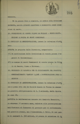Consorzio di garanzia per il collocamento del prestito obbligazionario «Lancia» 5,5%. Partecipazione dell'Istituto