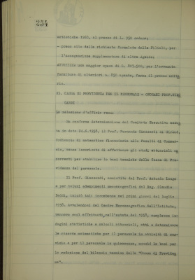 Cassa di previdenza per il personale, onorari prof. Fernando Giaccardi di Giranud