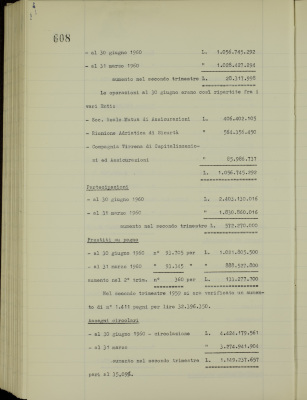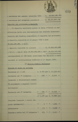 Parte prima - gestioni di credito. Andamento delle operazioni nel 2° trimestre 1960
