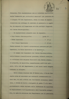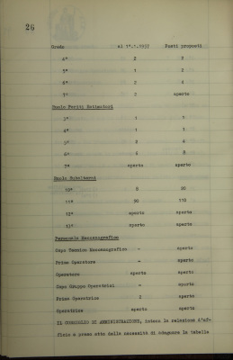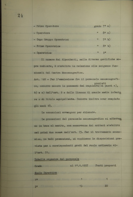 Revisione della tabella organica del personale