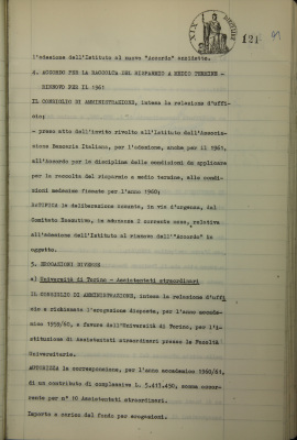Accordo interbancario per le condizioni. Rinnovo per il 1961