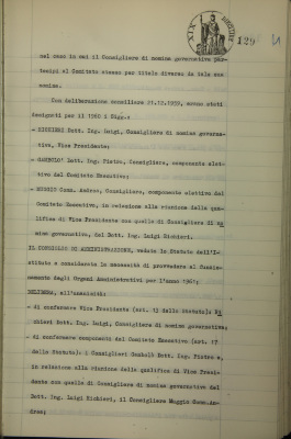 Nomina degli organi amministrativi per il 1961