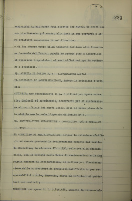 Agenzia di Torino n.4. Sistemazione locali. Assicurazione autovetture. Conguaglio 1960 e anticipo 1961