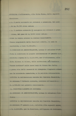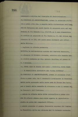 Nuova sede di piazza San Carlo. Fornitura porte forti e stanziamento suppletivo per «cassa continua»