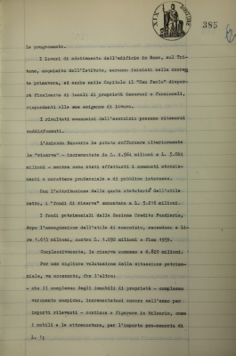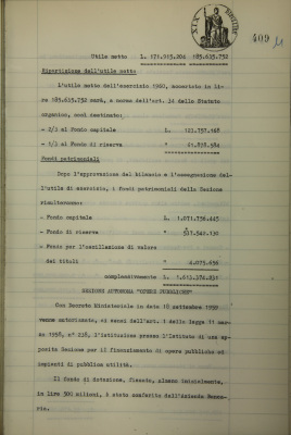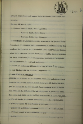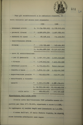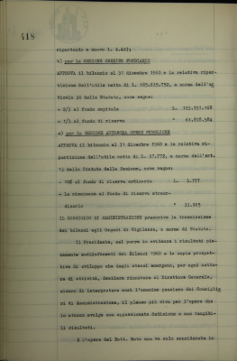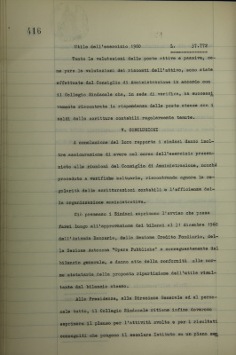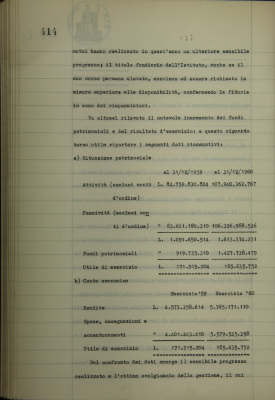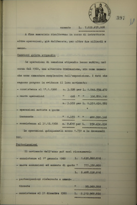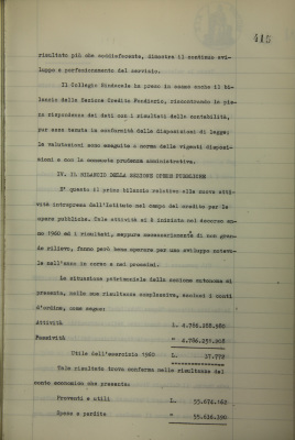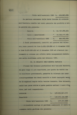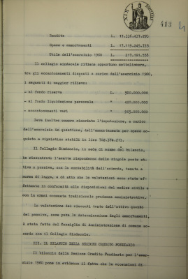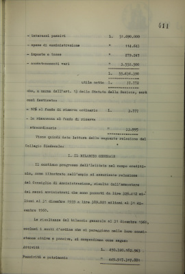 Parte prima - Gestioni di credito Approvazione dei bilanci dell'Istituto al 31/12/1960