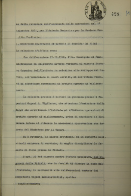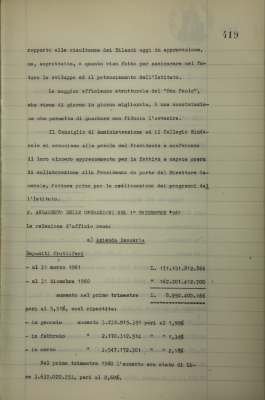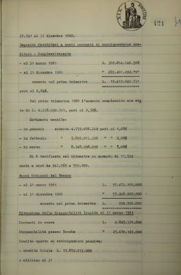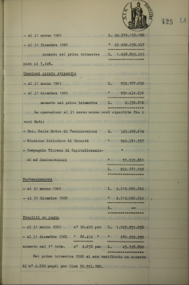 Andamento delle operazioni nel 1° trimestre 1961