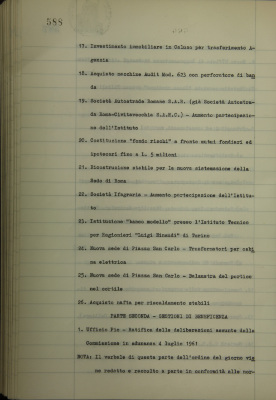 Parte seconda - Gestioni di beneficenza Ufficio pio, ratifica delle deliberazioni prese dalla Commissione in adunanza 26 giugno 1961 (verbale a parte)