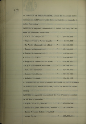 Ratifica di concessioni di fido d'importo eccedente il limite normale