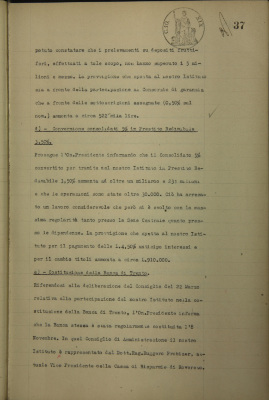 commemorazione consigliere Enrico Marchesi; partecipazione di nomina a consigliere di Carlo Pavesio; risultati della sottoscrizione Buoni del Tesoro nov. 4%; conversione consolidati 5% in prestito redimibile 3,5%; costituzione della Banca di Trento