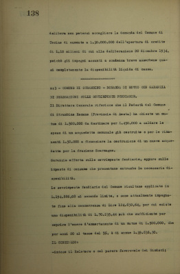 Comune di Torino, apertura di credito in conto corrente. Domanda di aumento