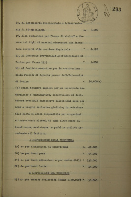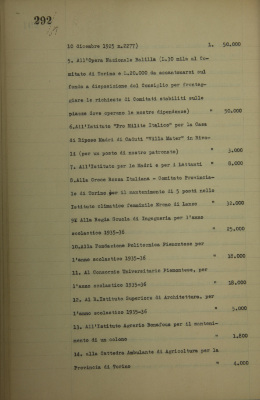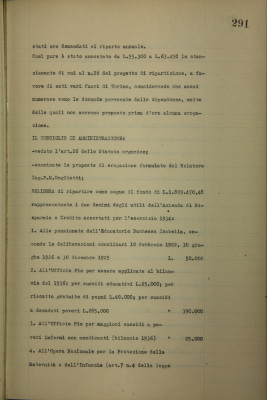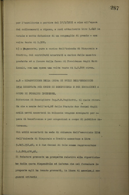 Ripartizione della quota di utili dell'esercizio 1934 riservata per le opere di beneficenza e per erogazioni a scopo di pubblico interesse