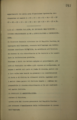 Guarina Aldo, ex impiegato dell'Istituto, ricorso straordinario al re. Autorizzazione a controricorrere