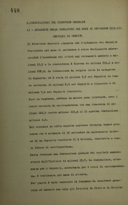 Parte prima - Gestioni di credito Comunicazioni del direttore generale: andamento delle operazioni nel mese di settembre 1935; operazioni deliberative della Giunta esecutiva