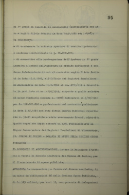 Comune di Torino, domanda di mutuo della Sezione opere pubbliche