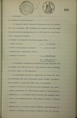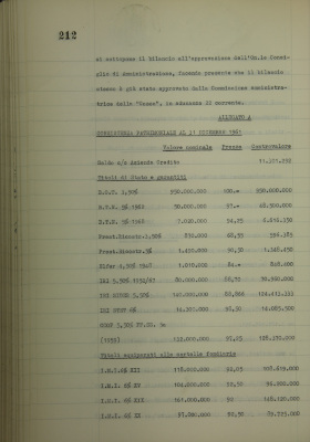 Cassa di Previdenza per il personale, bilancio al 31/12/1961