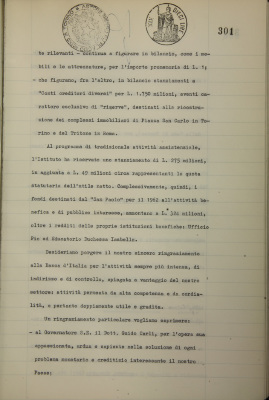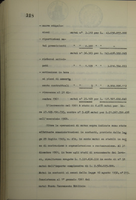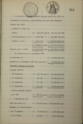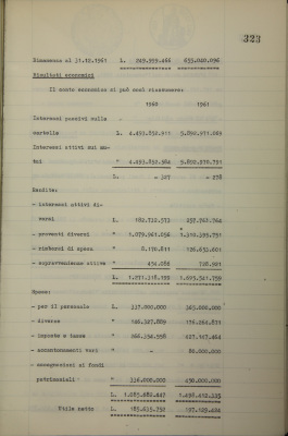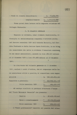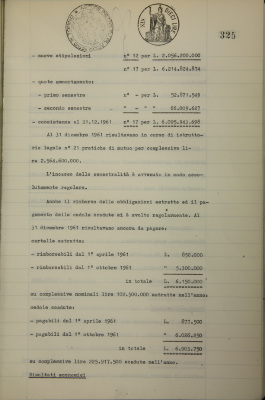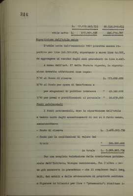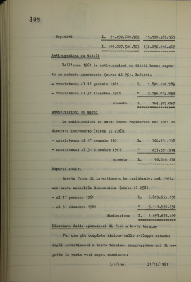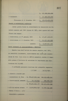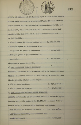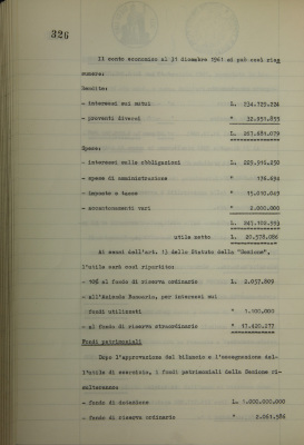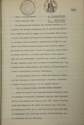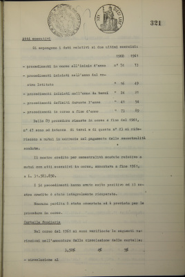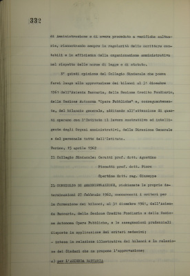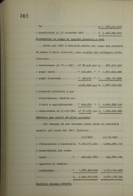 Parte prima - Gestioni di credito Approvazione dei bilanci al 31 dicembre 1961