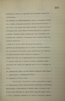 Delegazione della Sezione credito fondiario nell'Italia meridionale (Napoli, Bari, Catania), sistemazione uffici